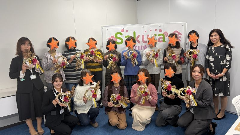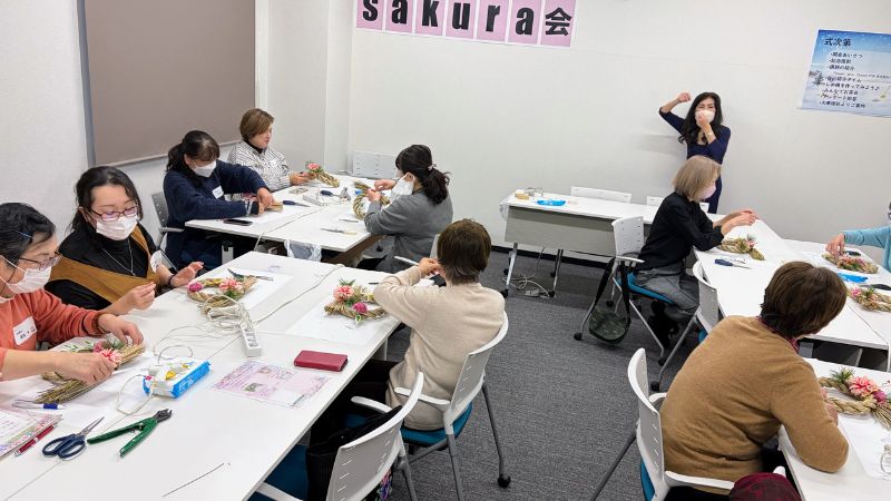 12月は企業さま、自治会さま、カルチャーセンター延べ80名様にお会いできて、寄り添ってしめ縄アレンジを作成させて頂きました。