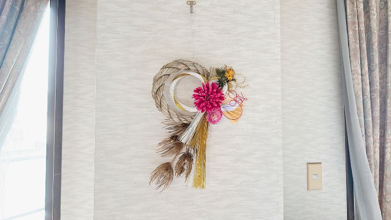 2.稲穂がない方に決め.そのしめ縄を横ではなく縦に使用することを決めました。